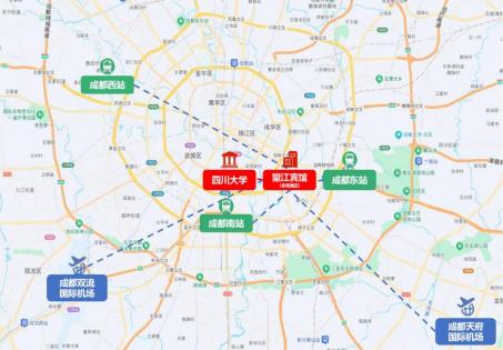 注:会场距离成都天府国际机场约 65 公里,约 50 分钟车程;距离成 都双流国际机场 21 公里,约 35 分钟车程。